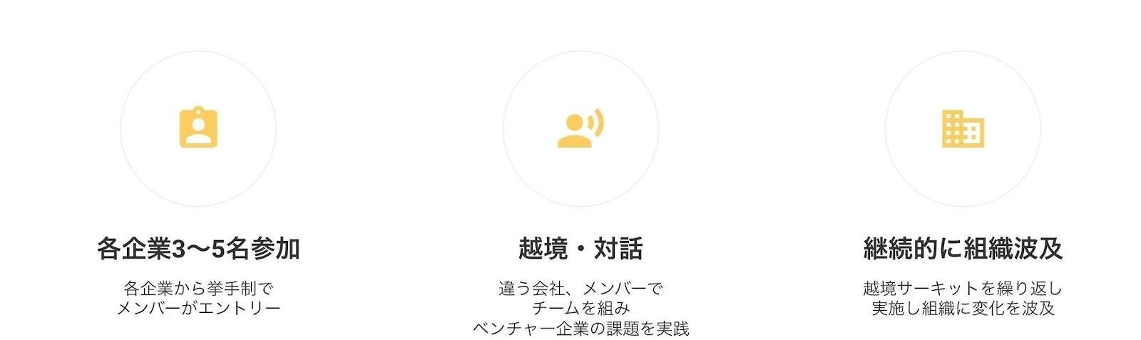 ①他社の従業員とチームアップ ②スタートアップ企業のリアルな課題に向き合う2つの越境を同時に経験できます。
