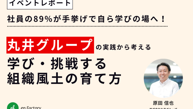 【イベントレポート】社員の89%が手挙げで自ら学びの場へ!丸井グループの実践から考える「学び挑戦する組織風土」の育て方 株式会社丸井グループは、上場以来初の赤字を経験した経営危機(2007〜2014年)を、硬直した「業績至上主義」から「自主性」「楽しさ」を重視する文化へと変革することで乗り越えました。その中核となったのが、中期経営推進会議への参加から人事異動... 2025年11月6日 2025年11月10日