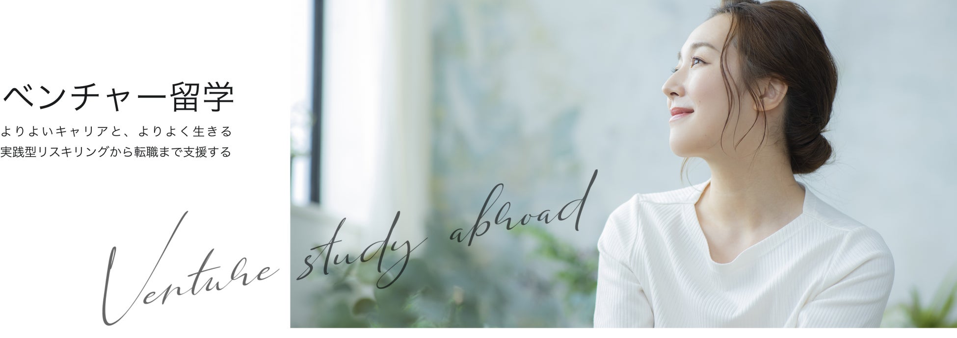 「ベンチャー留学」は、ベンチャー企業での実践経験を通じて、新しいスキルを習得し、キャリアアップを目指す人向けのプログラムです。プログラムでは、ベンチャー企業での実践経験、ワークショップ、キャリア面談を実施します。キャリアコンサルタントとの面談を行い、選考フローを経て決定したベンチャー企業での実践経験を通じて、自身の強み、理想の働き方、新たなキャリアへの眼差しを得て、より良いキャリアの選択(転職)を支援します。